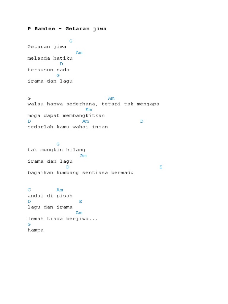 Download mp3 getaran jiwa p ramlee gratis, ada 20 daftar lagu getaran jiwa p ramlee yang bisa anda download. Recommended by the wall street journal. Ini bukan chord asal kepada lagu tersebut. Ramlee the musical getaran jiwa. Getaran jiwa melanda hatiku tersusun nada, irama dan lagu walau hanya sederhana tetapi tak mengapa moga dapat membangkitkan sedarlah kamu wahai insan tak mungkin hilang irama dan lagu bagaikan kembang sentiasa bermadu andai dipisah lagu dan.
