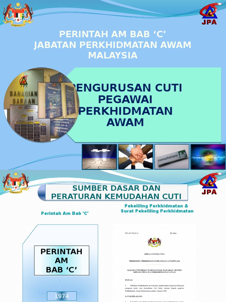 Sejarah peraturan cuti bersalin peraturan tempoh. Cuti sakit (para 1 (iii), perintah am, bab c: Perintah am 1 (i) bab 'c' cuti bukan hak, satu keistimewaan. Perintah am bab c cuti 1. Kelas pegawai dan kuasa melulus cuti 3. 3 cuti rehat bermakna cuti bergaji penuh yang diberi kerana perkhidmatan yang melayakkan di dalam sesuatu tahun, dari bulan januari hingga disember. September 2nd, 2012 file name : Archive for the 'perintah am bab c' category. Nota2u on 5 december 2008. Perintah am bab c (cuti) 1. Cuti rehat tiada genap setahun perkhidmatan. Tempoh pegawai dibenar meninggalkan tugas tanpa dikira sebagai putus perkhidmatan atau berhenti kerja. Sebarang tempoh seseorang pegawai itu dibenarkan meninggalkan tugasnya dan peninggalan tugas itu tidak dikira sebagai putus perkhidmatan atau sebagai berhenti kerja perintah am 1 (i) bab c.