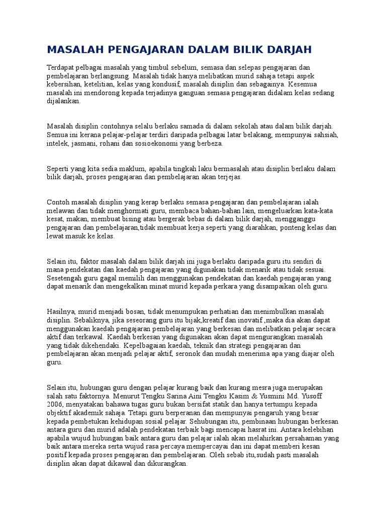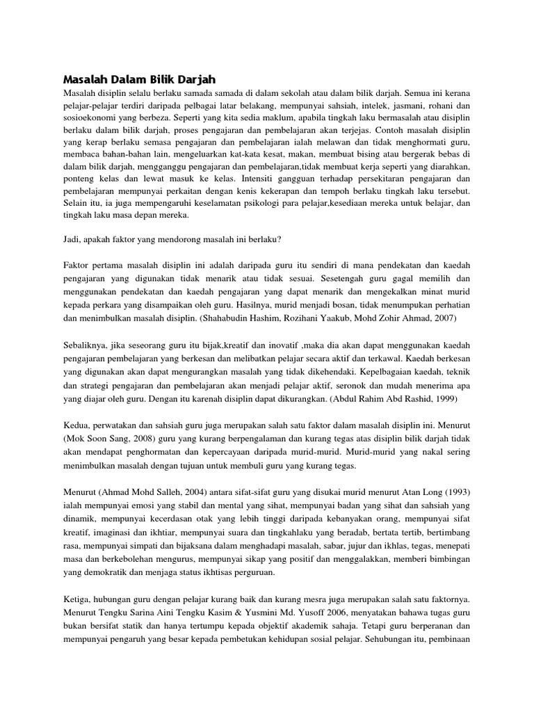 Masalah utama yang hadapi di dalam bilik darjah semasa menjalankan proses pengajaran dan pembelajaran di sekolah ialah masalah displin.masalah. Kemahiran bertutur kemahiran bertutur merujuk kepada. Model addei (berorentasikan produk) model assure (berorentasikan bilik darjah) model dick. Bilik darjah yang teratur bergantung kepada kemahiran guru mencegah masalah daripada berlaku dan bukannya menyelesaikan masalah yang telah berlaku. Pembelajaran yang menyeronokkan di dalam bilik darjah akan menimbulkan minat dan motivasi dalam diri murid untuk belajar.